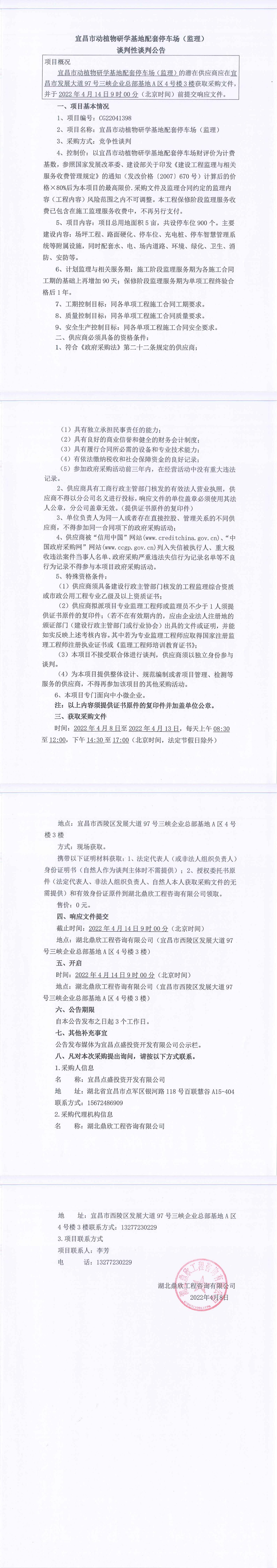 宜昌市動(dòng)植物研學(xué)基地配套停車場監(jiān)理談判公告