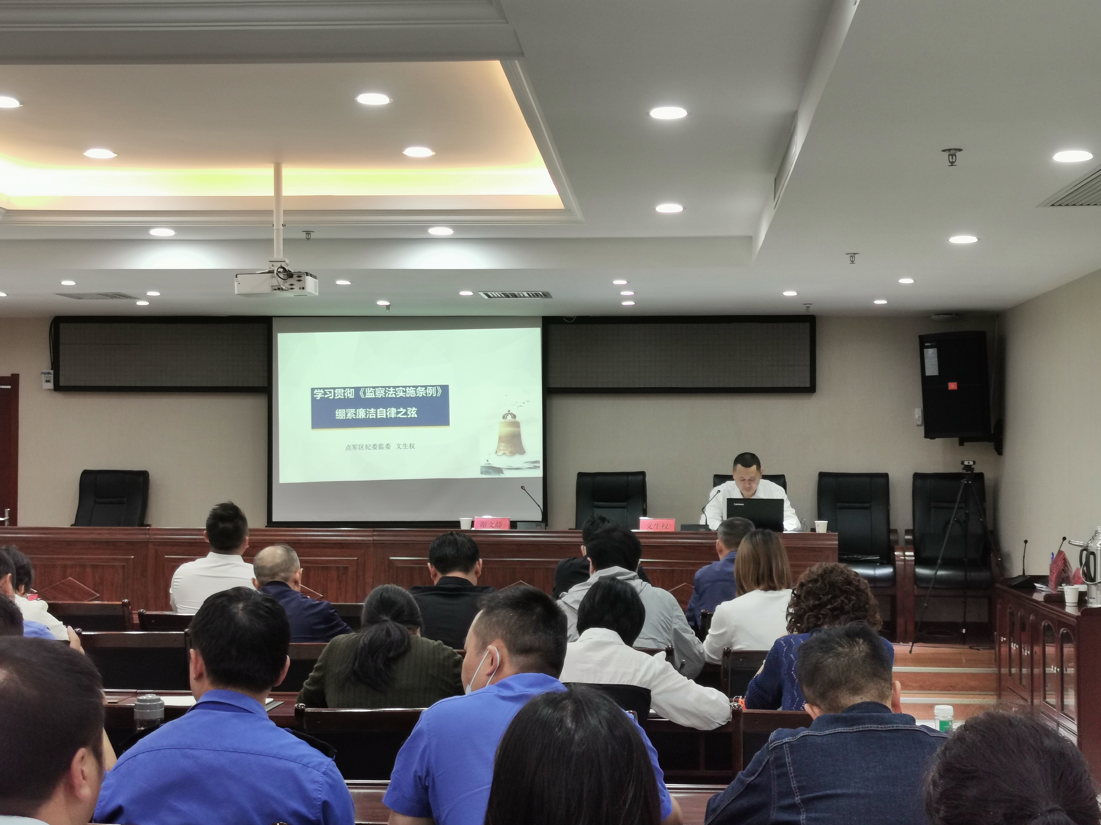 宣講以《學(xué)習(xí)貫徹<監(jiān)察法實(shí)施條例>繃緊廉潔自律之弦》為題,從《監(jiān)察法》及實(shí)施條例的關(guān)系,《條例》制定的背景、重要意義及主要內(nèi)容,職務(wù)犯罪釋義及幾種典型職務(wù)犯罪解析,公職人員禁止經(jīng)商辦企業(yè)的相關(guān)規(guī)定,如何做一名遵紀(jì)守法的黨員干部五個(gè)方面進(jìn)行講解,以案說紀(jì),進(jìn)一步教育廣大黨員干部樹牢紀(jì)法意識(shí)。