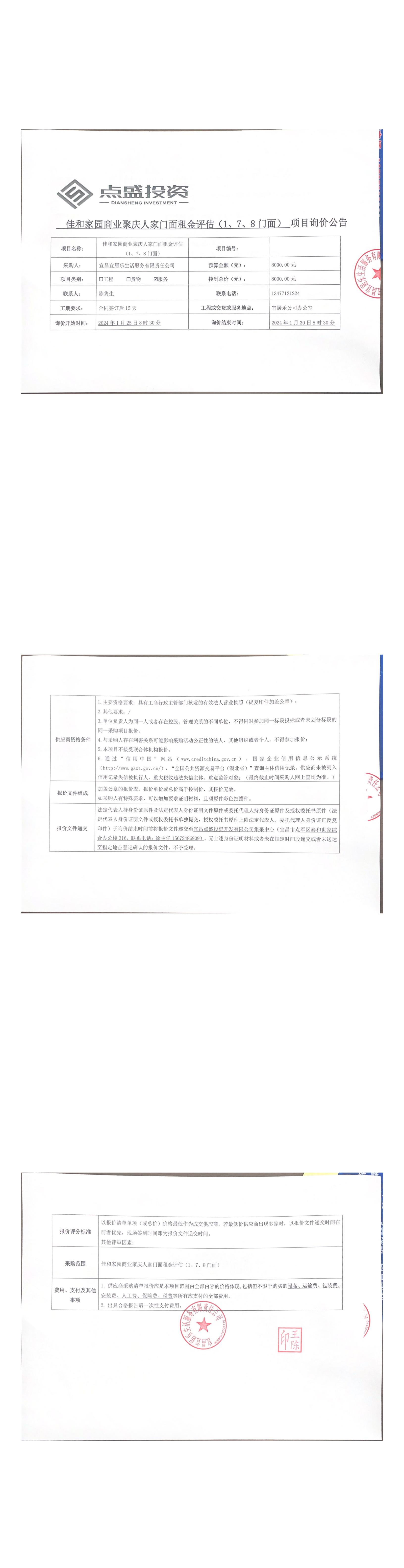 佳和家園商業(yè)聚慶人家門面租金評估(1、7、8門面)詢價公告