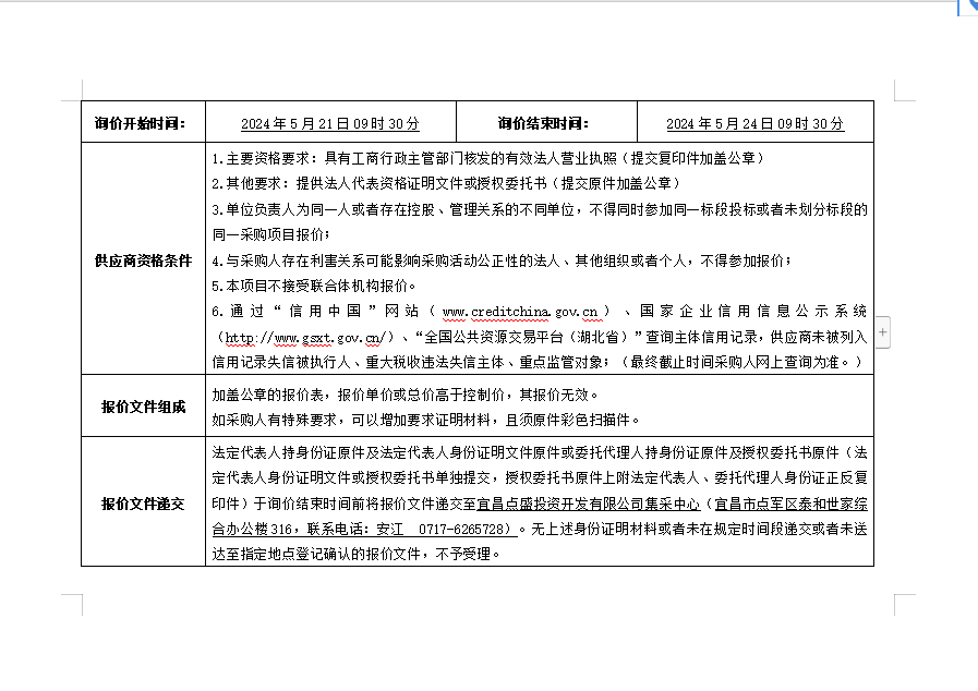 詢(xún)價(jià)公告