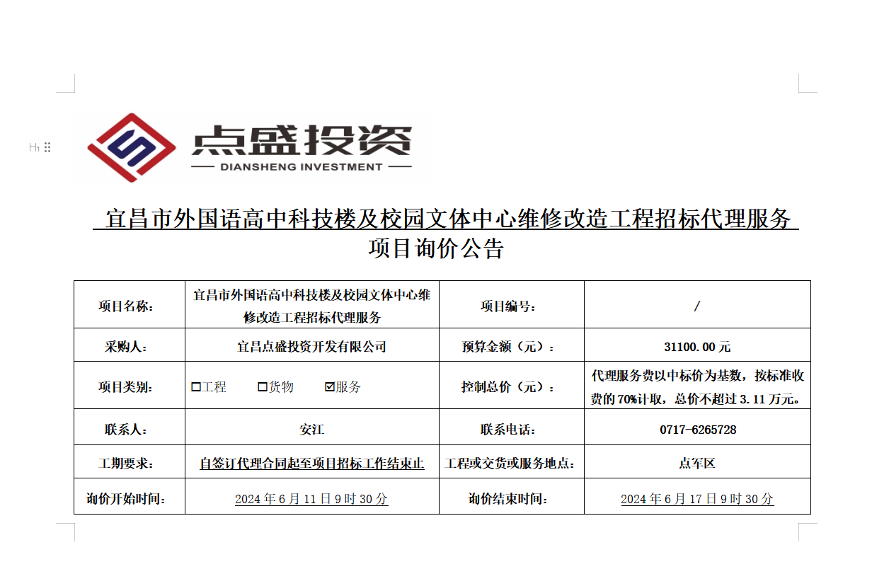 宜昌市外國語高中科技樓及校園文體中心維修改造工程招標代理詢價公告