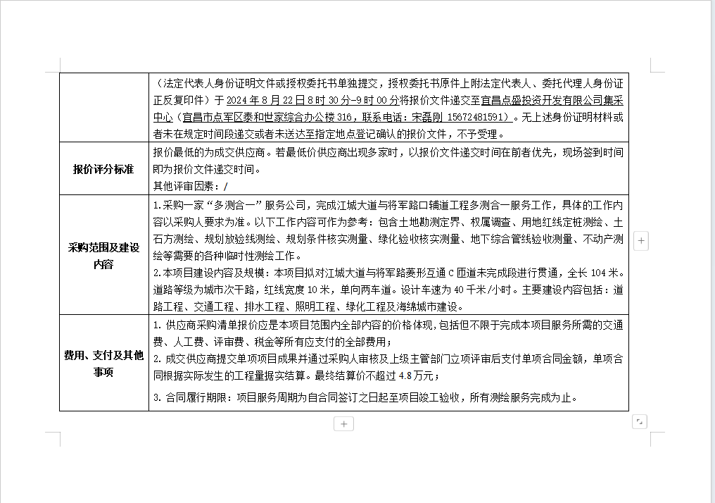 江城大道與將軍路口輔道工程多測合一服務(wù)詢價公告