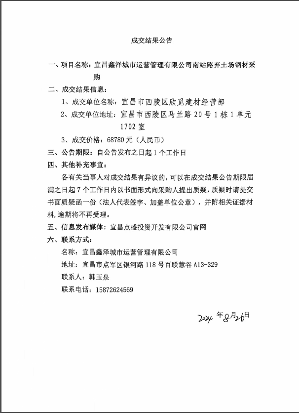 南站路棄土場鋼材采購項(xiàng)目成交公告
