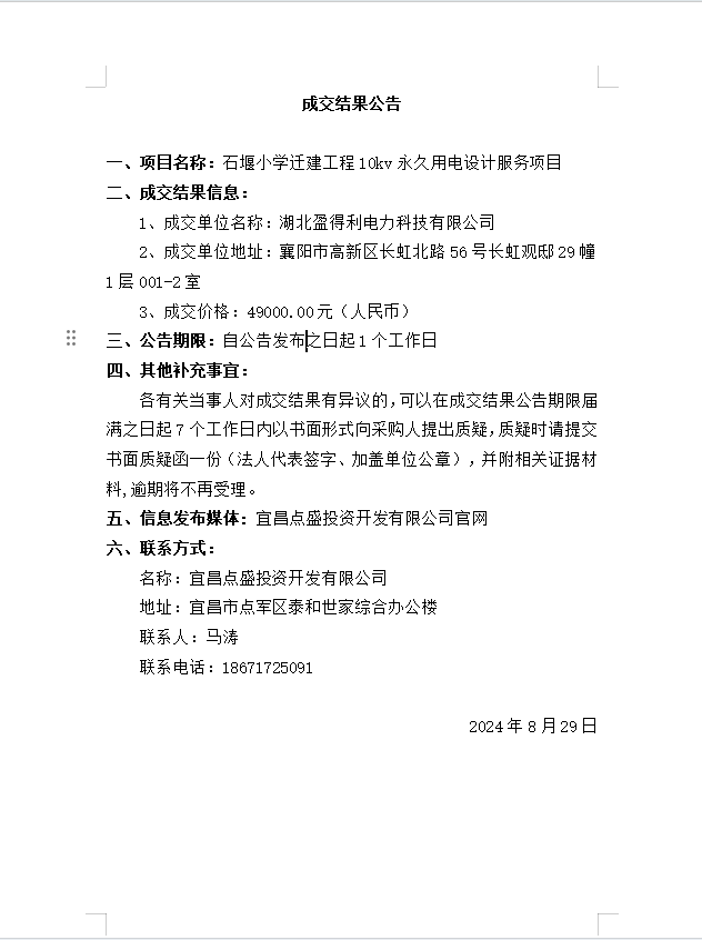 發(fā)布時間:2024/8/29 來源:宜昌點盛投資開發(fā)有限公司 訪問:1054