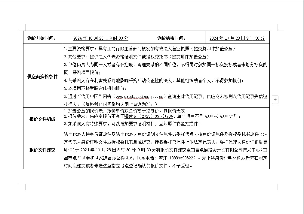 詢價(jià)公告