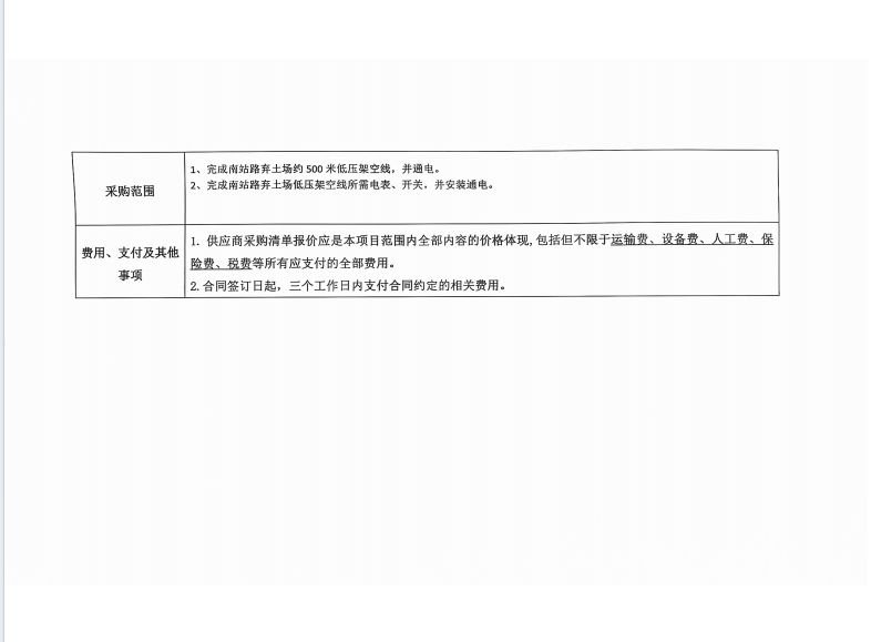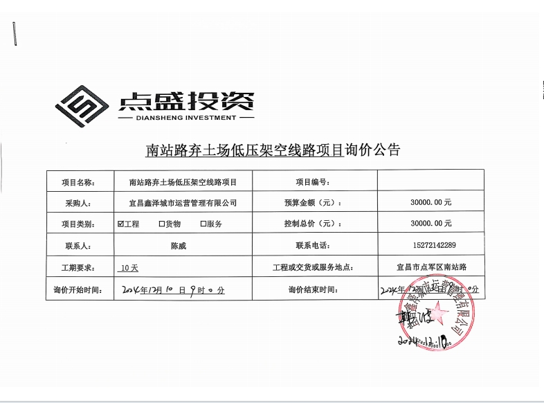 南站路棄土場低壓架空線路項目詢價公告